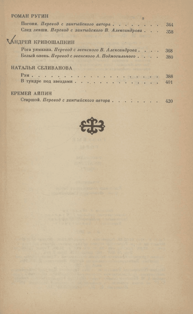В сборник вошли произведения писателей Крайнего Севера и Дальнего Востока. Наряду с избранными рассказами Г. Ходжера, Ю. Рытхэу, Ю. Шесталова, В. Санги, В. Коянто, Н. Селивановой представлена проза зачинателей литературы этого региона - юкагира Тэкки Одулока, ненца Тыко Вылки, удэгейца Джанси Кимонко. Всех участников сборника объединяет стремление правдиво отобразить жизнь своего народа, его прошлое и настоящее