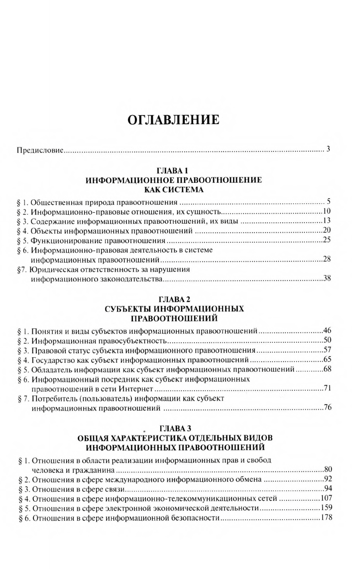Авторами в монографии предложена собственная концептуальная теория информационных правоотношений, системно рассмотрена их правовая природа. Проанализированы правовые проблемы отдельных видов информационных правоотношений: отношения в сфере международного информационного обмена; отношения в сфере связи; отношения в сфере информационно-телекоммуникационных сетей; отношения в сфере электронной экономической деятельности; отношения в сфере информационной безопасности