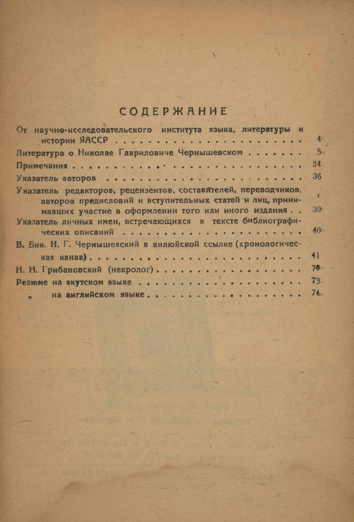 Н. Г. Чернышевский в Вилюйской ссылке : (библиографический указатель) / Н. Н. Грибановский ; Науч.-исслед. Ин-т языка, литературы и истории ЯАССР. - Якутск : Государственное издательство ЯАССР, 1947. - 71, [4] с.