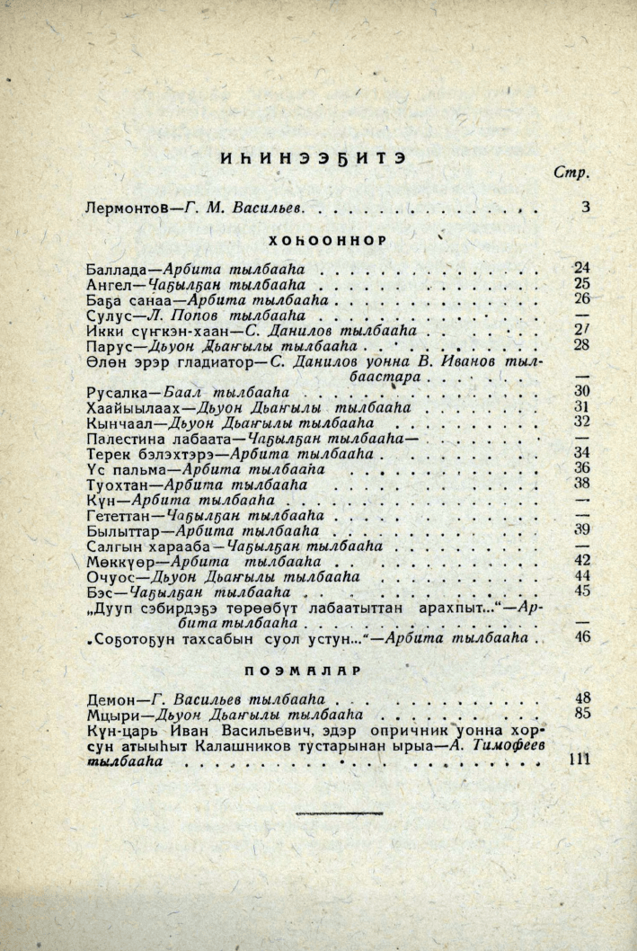 - Якутско-русские и русско-якутские переводы произведений писателей > Переводы произведений русских писателей на якутский язык > Произведения русской литературы XIX века > Лермонтов Михаил Юрьевич,