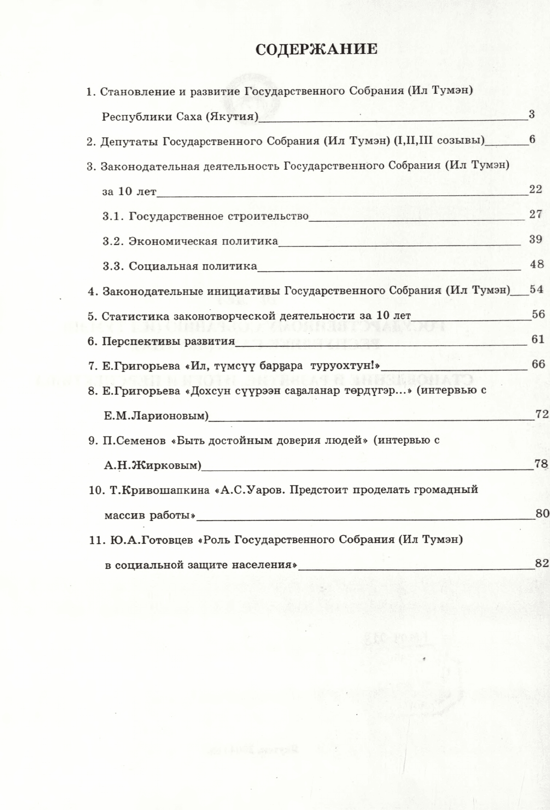 10 лет Государственному Собранию (Ил Түмэн) Республики Саха (Якутия): становление и развитие, итоги и перспективы. - Якутск : [б. и.], 2004. - 92 с.