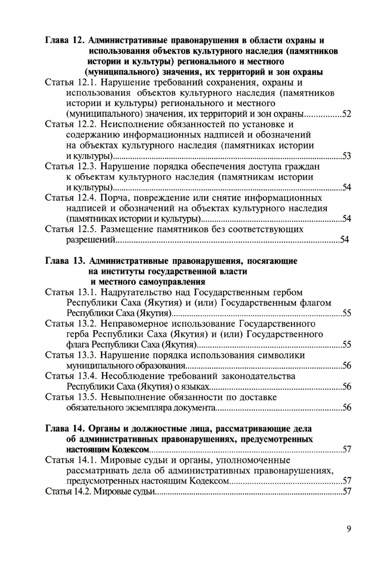 Настоящий Кодекс в соответствии с Конституцией Российской Федерации, Кодексом Российской Федерации об административных правонарушениях, Конституцией (Основным законом) Республики Саха (Якутия) устанавливает административную ответственность по вопросам, не отнесенным Кодексом Российской Федерации об административных правонарушениях к ведению Российской Федерации, в том числе за нарушение норма и правил, предусмотренных законами и иными нормативными правовыми актами Республики Саха (Якутия), муниципальными нормативами правовыми актами, а также определяет органы и должностных лиц, которые уполномочены составлять протоколы и рассматривать дела об административных правонарушениях, предусмотренных настоящим Кодексом