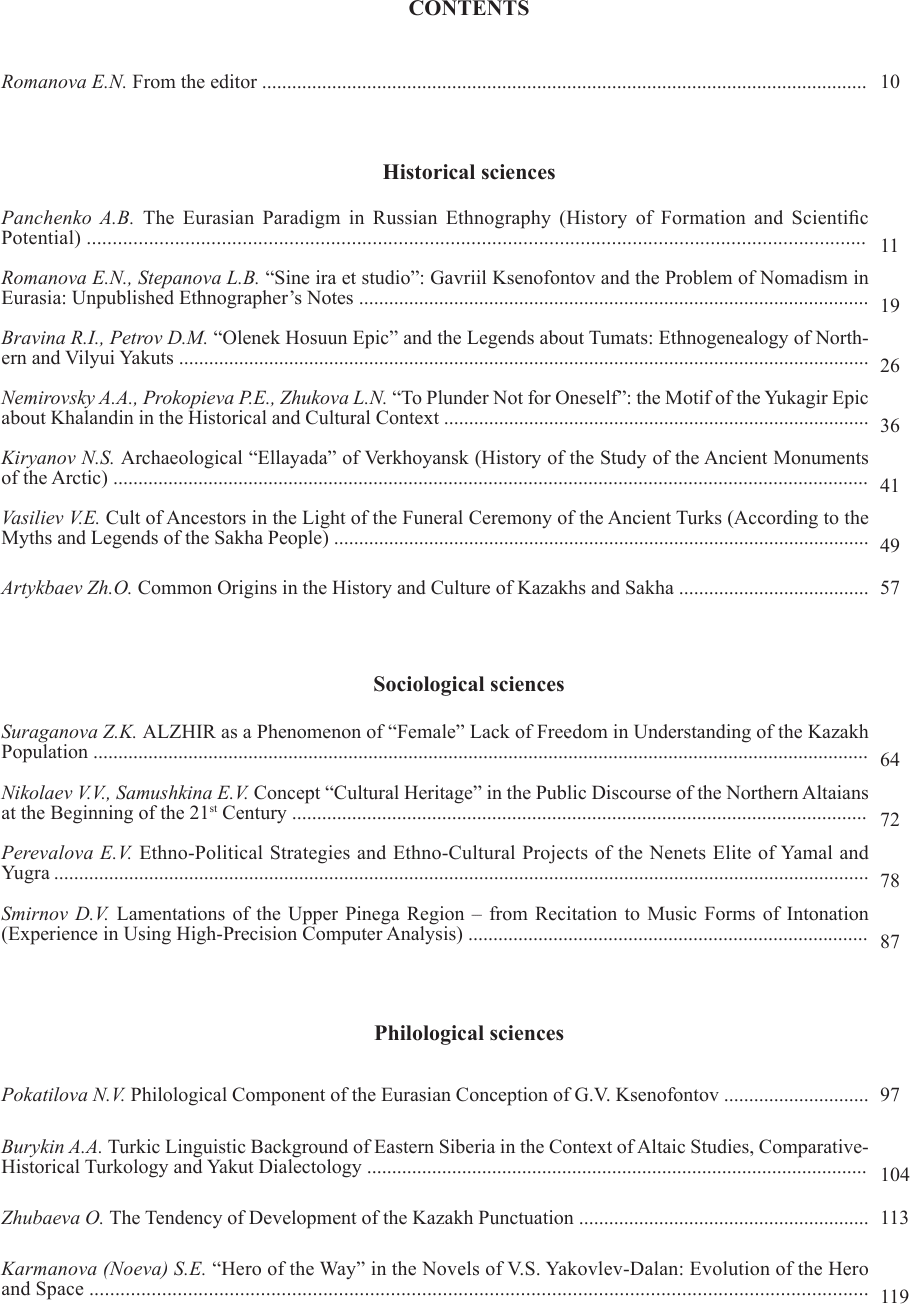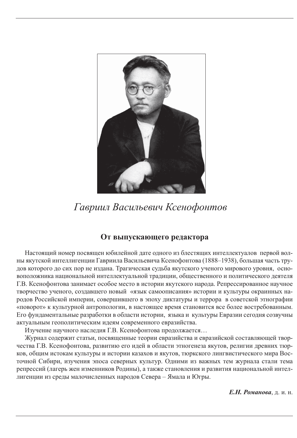 - 3. Романова Екатерина Назаровна, Степанова Лена Борисовна. Sine ira et studio: Гавриил Ксенофонтов и проблема кочевничества Евразии: неопубликованные заметки этнографа
