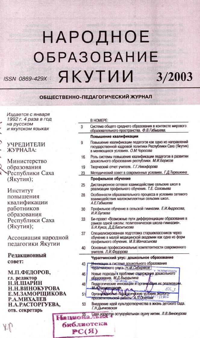 - Периодические издания Якутии (конец XIX – XXI вв.) > Журналы > Народное образование Якутии > 2003,