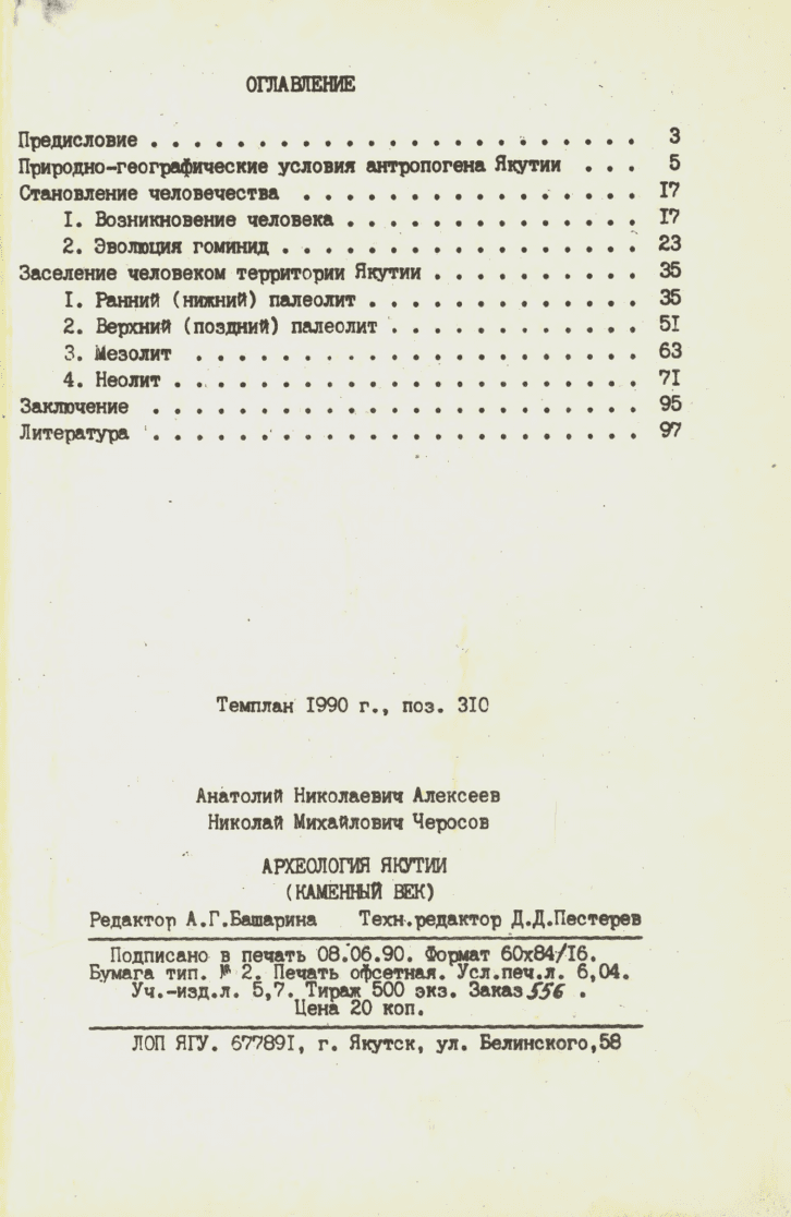 Археология Якутии : (каменный век) : учебное пособие / А. Н. Алексеев, Н. М. Черосов ; Министерство высшего и среднего образования РСФСР, Якутский государственный университет. - Якутск : Якутский государственный университет, 1990. - 103, [2] с.