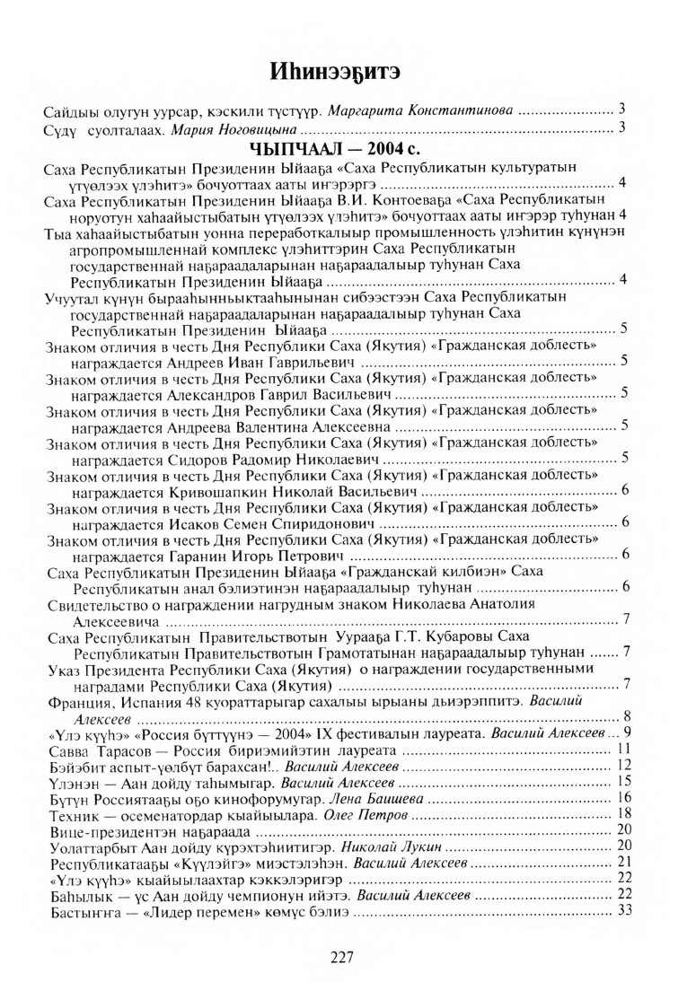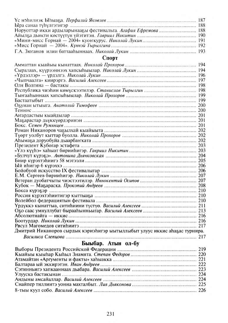 Чыпчаал 2004. Өйдүү-саныы сылдьаары / "Үлэ күүһэ" хаһыат ред. ; [хомуйан онгордулар: В. И. Алексеев, Е. А. Пономарева]. - Дьокуускай : Сахаполиграфиздат, 2005. - 231, [8] л.