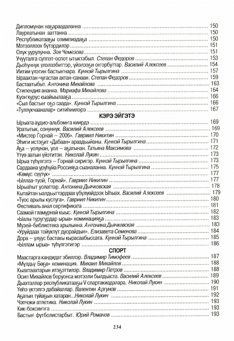 Чыпчаал - 2006 : өйдүү-саныы сылдьаары / "Үлэ күүһэ" хаһыат ред. ; [кинигэ В. И. Алексеев идеятынан, бэчээккэ бэлэмнээһининэн, ред. таҕыста ; хомуйан оҥордулар: Василий Ильич Алексеев, Елена Александровна Пономарева]. - Дьокуускай : Медиа-холдинг Якутия, 2007. - 235 с.