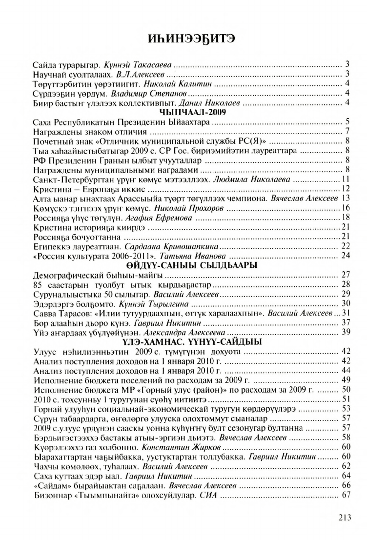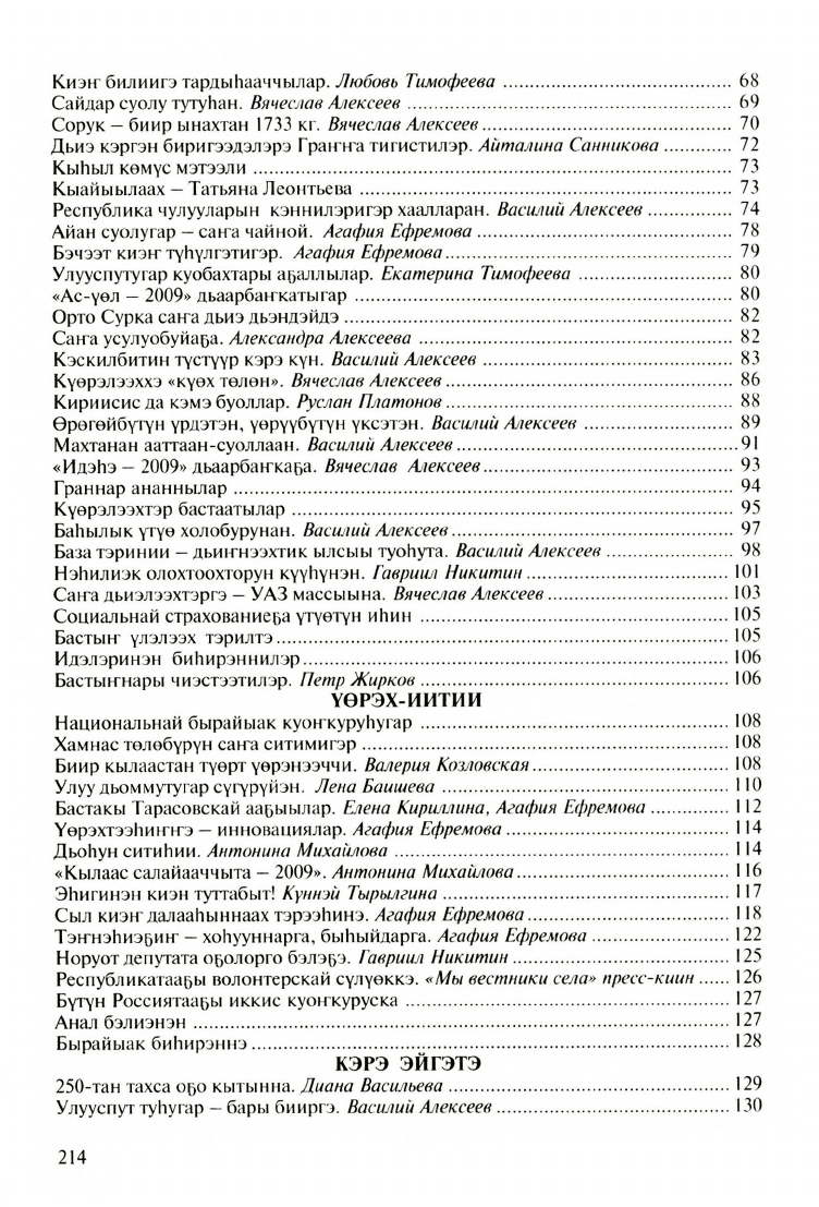 Чыпчаал - 2009 : өйдүү-саныы сылдьаары / "Үлэ күүһэ" хаһыат ред. ; [кинигэ "Үлэ күүһэ" хаһыат ред. В. И. Алексеев идеятынан, бэчээккэ бэлэмнээһининэн, ред. таҕыста ; хомуйан оҥордулар: В. И. Алексеев, Е. А. Пономарева]. - Дьокуускай : Редакция газеты "Үлэ күүһэ", 2010. - 215 с.