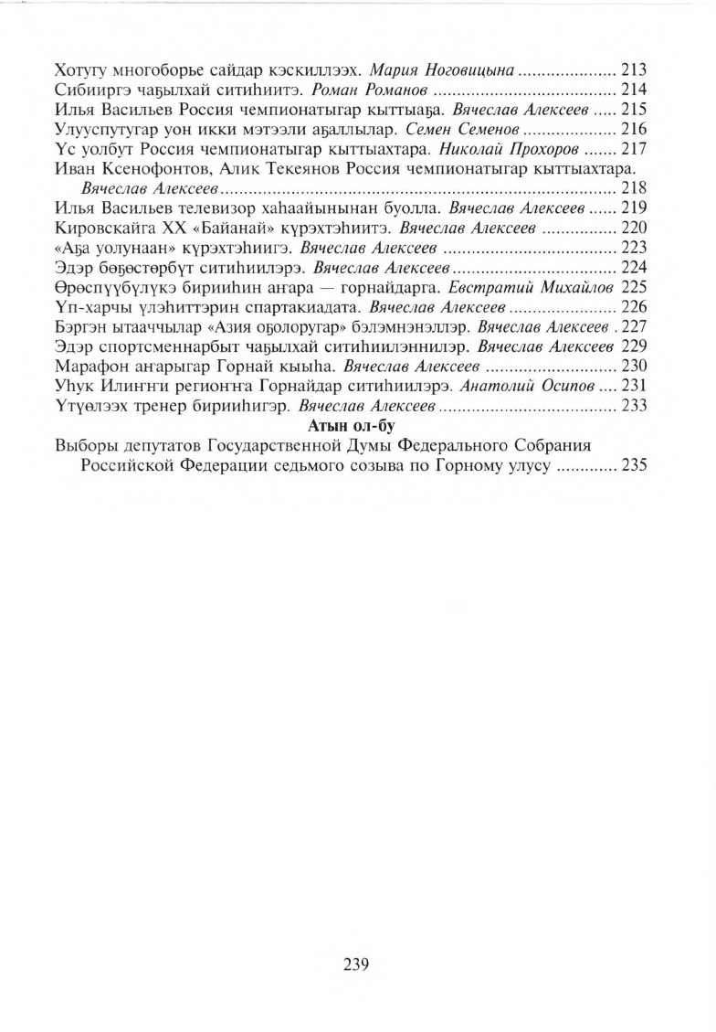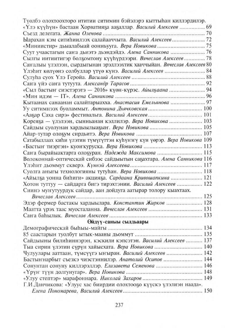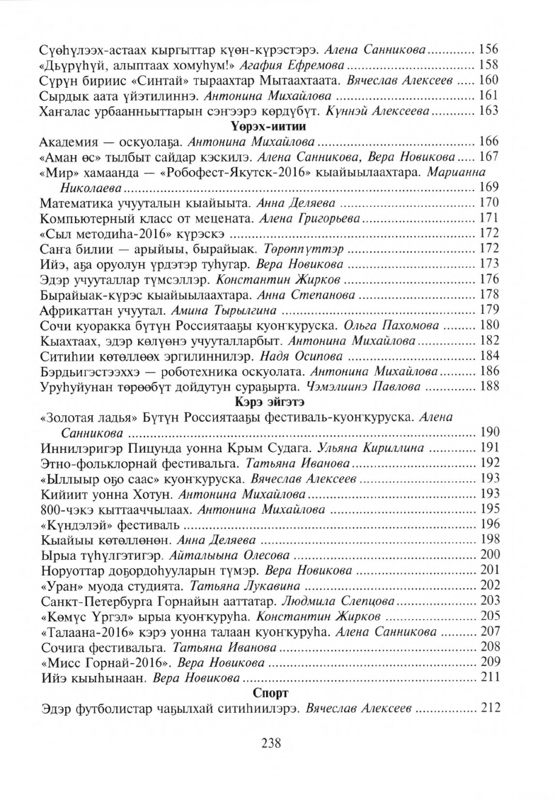 Чыпчаал - 2016. Өйдүү-саныы сылдьаары / Саха Өрөспүүбүлүкэтин Горнай улууһунааҕы "Үлэ күүһэ" хаһыат ред. ; [В. И. Алексеев идеятынан, бэчээккэ бэлэмнээһининэн, ред. ; хомуйан оҥордулар: В. И. Алексеев, Е. А. Пономарева]. - Бэрдьигэстээх : "Үлэ күүһэ" хаһыат редакцията, 2017 (Дьокуускай : Медиа-холдинг Якутия). - 239 с.
