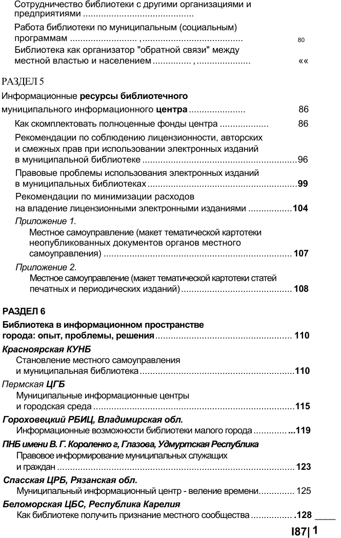 Библиотеки. Население. Местная власть ; информационное сотрудничество продолжается : сб. док. и материалов ; [ред.-сост. И. Михнова]. - М. : Либерея, 2003. - 192 с. ; 21 см. - ( Альманах "Приложение к журналу "Библиотека" ; 2- е полугодие 2003 г.).