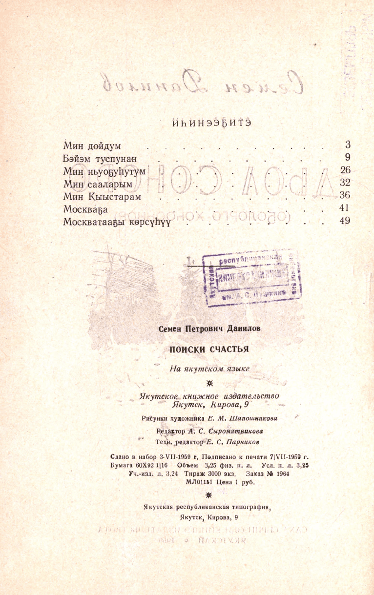 Якутскай : Саха сиринээҕи кинигэ изд-вота, 1959.