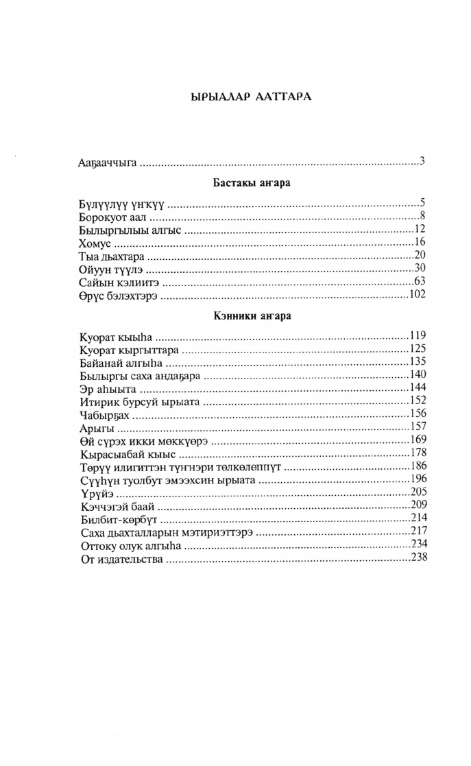 Бу хомуурунньукка А. Е. Кулаковскай 1924-1925 сс. таһааттарбыт кинигэтинэн бэчээттэннэ. Кинигэҕэ автор хос быһаарыы оҥортообута, түөлбэ тылларын суруйбута туох да уларытыыта суох киирдэ