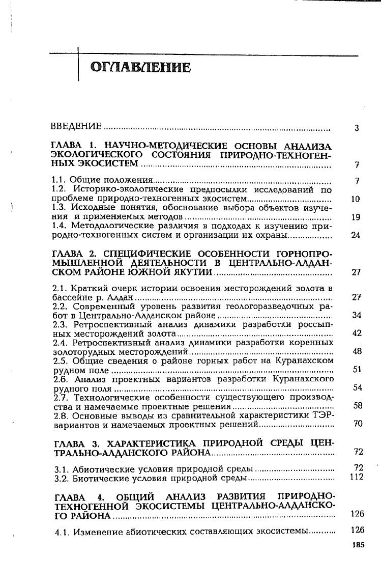 Якутия - горнодобывающий регион России со сплошным развитием многолетнемерзлых горных пород (криолитозоны), в пределах которого более 100 лет назад начата добыча россыпного золота, а в последующем олова, каменного угля, алмазов, платины и других полезных ископаемых. Затронутые горными работами исходные природно-территориальные (ландшафтные) комплексы преобразованы в настоящее время в природно-техногенные экосистемы, обладающие целым рядом специфических особенностей по сравнению с исходным состоянием. В течении ряда лет изучались подобные природно-техногенные экосистемы в пределах Куранахского рудного поля в Центрально-Алданском районе (ЦАР) Южной Якутии. Выявленные закономерности оказались достаточно характерными для всего Южно-Якутского региона. Их необходимо учитывать при оценках воздействия на окружающую среду хозяйственной и иной деятельности, экологическом проектировании, проведении экологических экспертиз и т. д. Южная Якутия - перспективный регион для дальнейшего горнопромышленного освоения