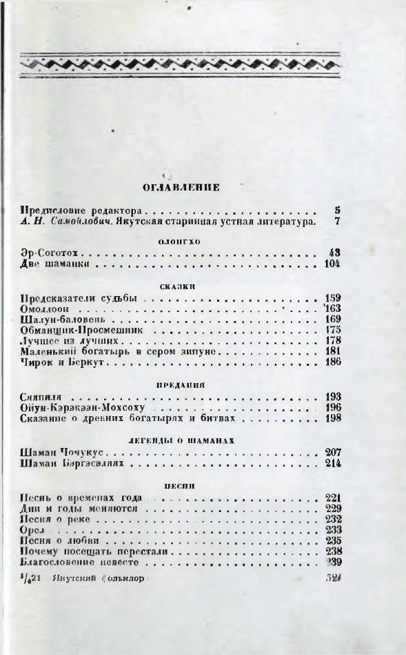 Якутский фольклор / тексты и пер. А. А. Попова ; лит. обраб. Е. М. Тагер ; общ. ред. М. А. Сергеева ; вступ. ст. акад. А. Н. Самойловича. - Москва : Советский писатель, 1936. - 319, [3] с.