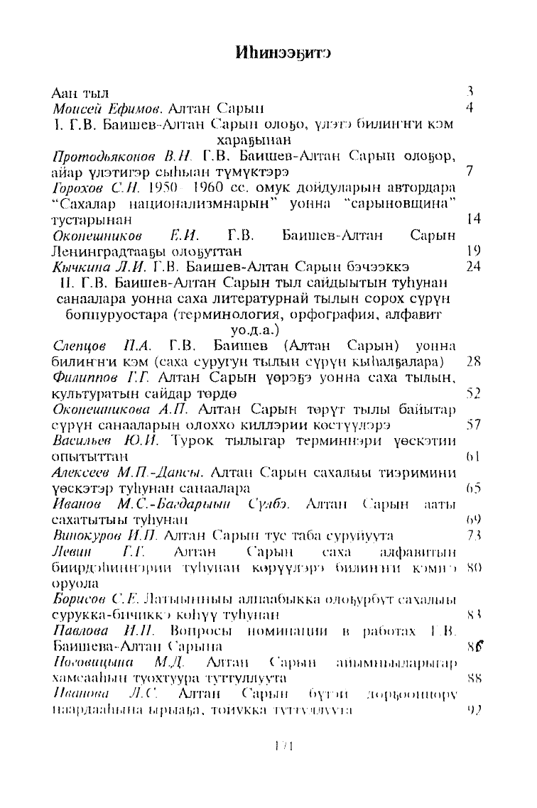 Хомуорунньукка саха 20-с сыллардааҕы интеллигенциятын биир чаҕылхай бэрэстэбиитэлэ - тыл үөрэхтээҕэ, суруйааччы Г. В. Баишев - Алтан Сарыг 100 сааһыгар аналлаах I научнай-практическай конференция матырыйааллара киирдилэр. Кинигэ киэҥ ааҕааччыга ананар.