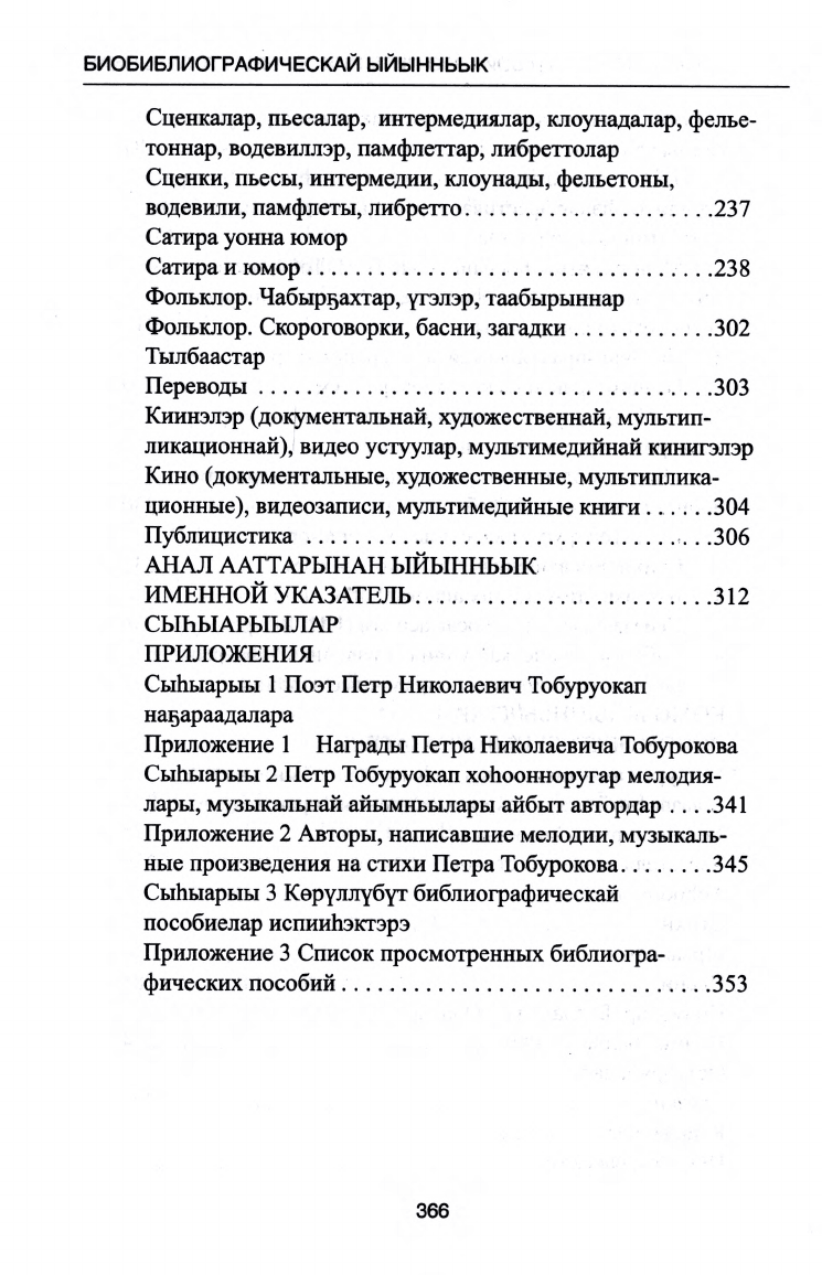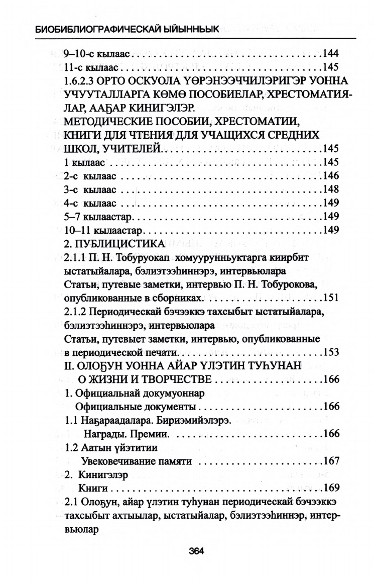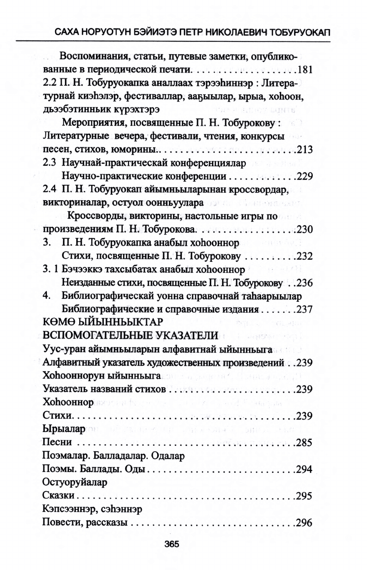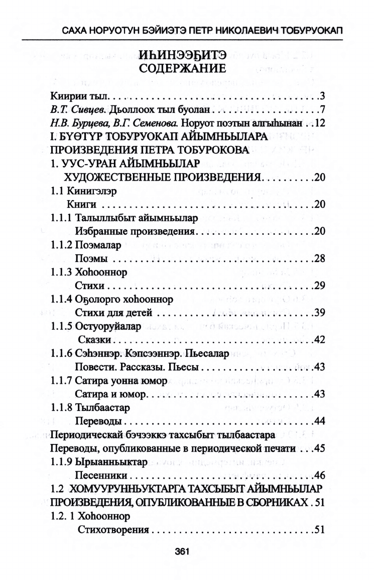 Саха норуотун бэйиэтэ Петр Николаевич Тобуруокап : биобиблиографическай ыйынньык / О. Д. Федорова аатынан Үөһээ Бүлүүтээҕи киин б-ка, Кыраайы үөрэтэр отдела ; [хомуйан оҥордулар: Г. А. Саввинова, Г. А. Егорова, Г. П. Саввинова ; киирии тыл авт.: В. Т. Сивцев, Н. В. Бурцева, В. Семенова]. - Дьокуускай : Компания "Дани-Алмас", 2018. - 366 с.