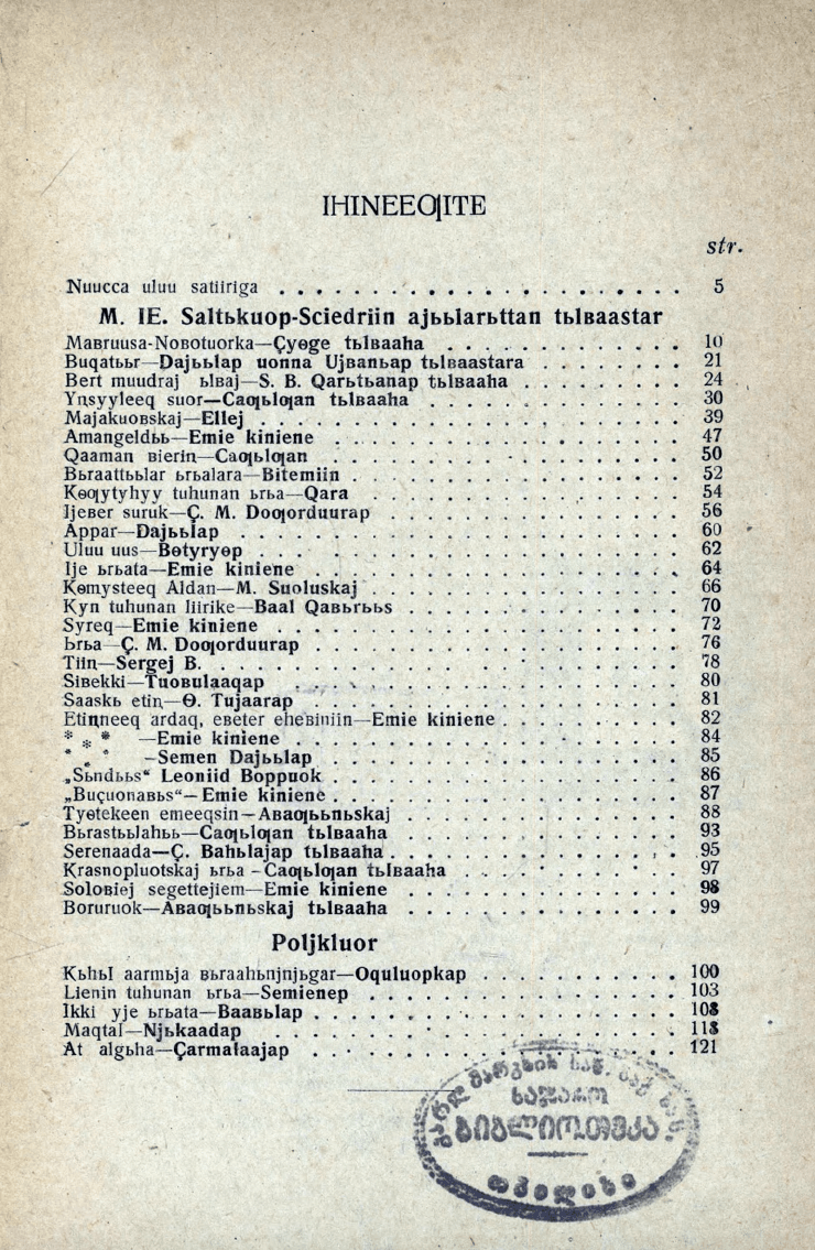 Уус-уран литиэратуура : Саха сиринээҕи собиэтскэй суруйааччылар сойуустарын сборнига. - Йакуутскай : САССР судаарыстыбаннай изд-бата, 1938-. 1939, кн. 4. - 1939. - 121, [2] с.