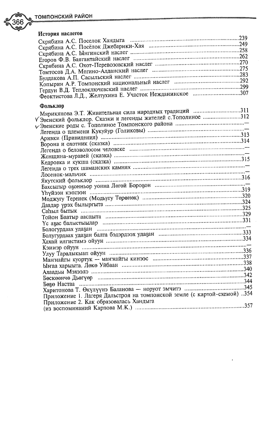 Томпонский улус (район) : история, культура, фольклор / Администрация муницип. района " Томпон. улус (район)", Ин-т гуманитар. исслед. АН РС(Я) ; [гл. ред. д. и. н., проф., акад. АН РС(Я) В. Н. Иванов]. - Якутск : Бичик, 2007. - 366 с. - (Улусы Республики Саха (Якутия)).
