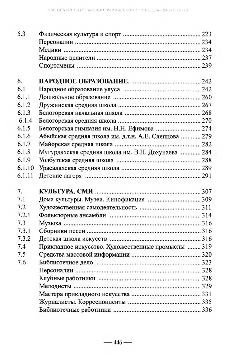 Абыйский улус : библиографический указатель (2001-2010) / Муницип. казен. учреждение Абый. межпоселенч. централиз. библ. система, Центр. улус. б-ка ; [сост. А. К. Корякина ; ред. Е. П. Яковлева ; отв. за вып. Г. Е. Слепцова]. - Якутск : ИП "Тимофеева М. И.", 2016. - 447 с.