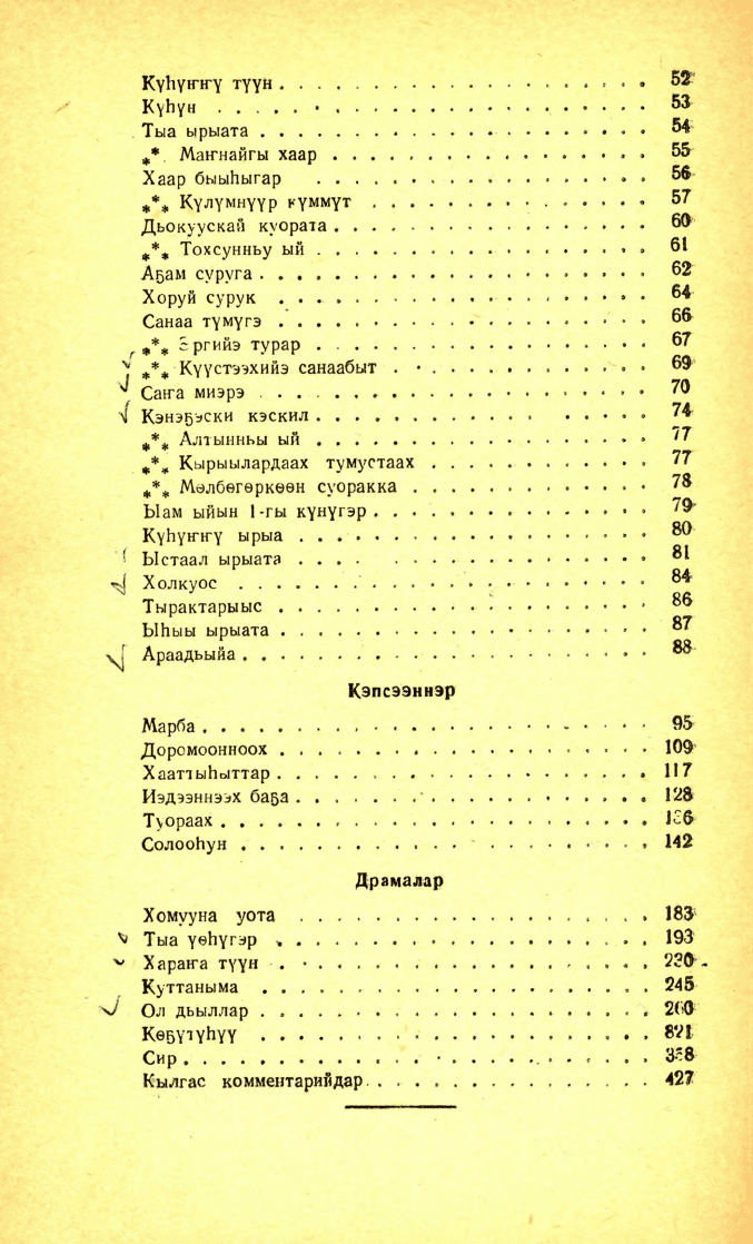 Талыллыбыт айымньылар: хоһооннор кэпсээннэр пьесалар