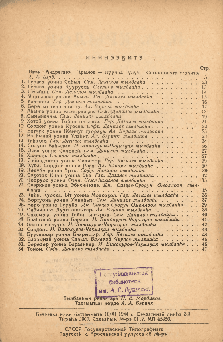 Үгэлэр / И. А. Крылов ; Алексей Бэрияк [уо. д.