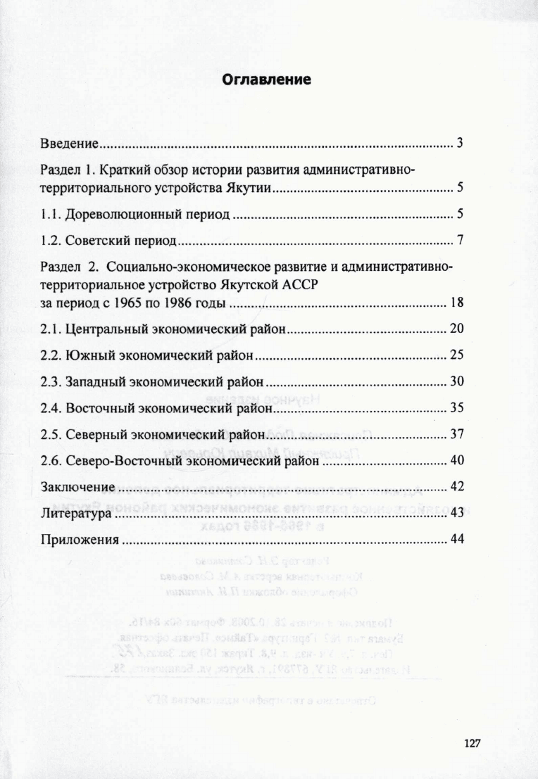 Административно-территориальное устройство - категория объективная, историческая. Данная работа подводит некоторый итог основанной в советский период серии справочников по административно-территориальному делению Якутской АССР. Авторы составили сводные таблицы динамики административно-территориального деления Якутии за период с 1965 года по 1986 год с определенными уточнениями. В работе рассмотрены важнейшие события в хозяйственной жизни Якутии, которые явно или косвенно способствовали немедленной или отсроченной трансформации поселений, поселенческой сети и административно-территориального деления