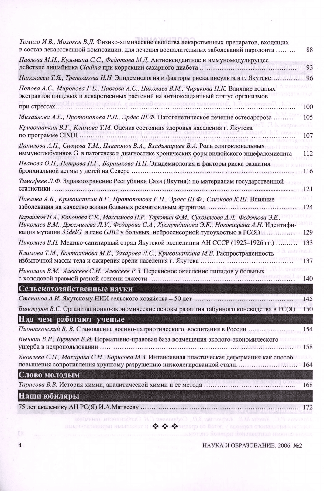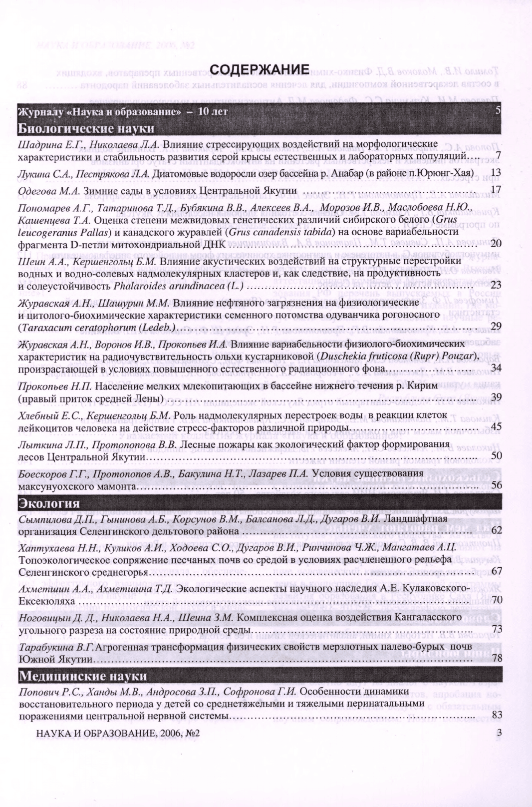 Наука и образование: научный и общественно-политический журнал / учредители: Академия наук Республики Саха (Якутия), Якутский научный центр СО РАН, Северо-Восточный федеральный университет им. М. К. Аммосова, Министерство образования Республики Саха (Якутия) ; главный редактор д.г.-м.н. И. И. Колодезников. – Якутск : Издательство ЯНЦ СО РАН, 1996-. – Ежекварт. – ISSN 2073-8129 (print). – Текст : непосредственный. — 2006, N 2 (37). – 175 с.