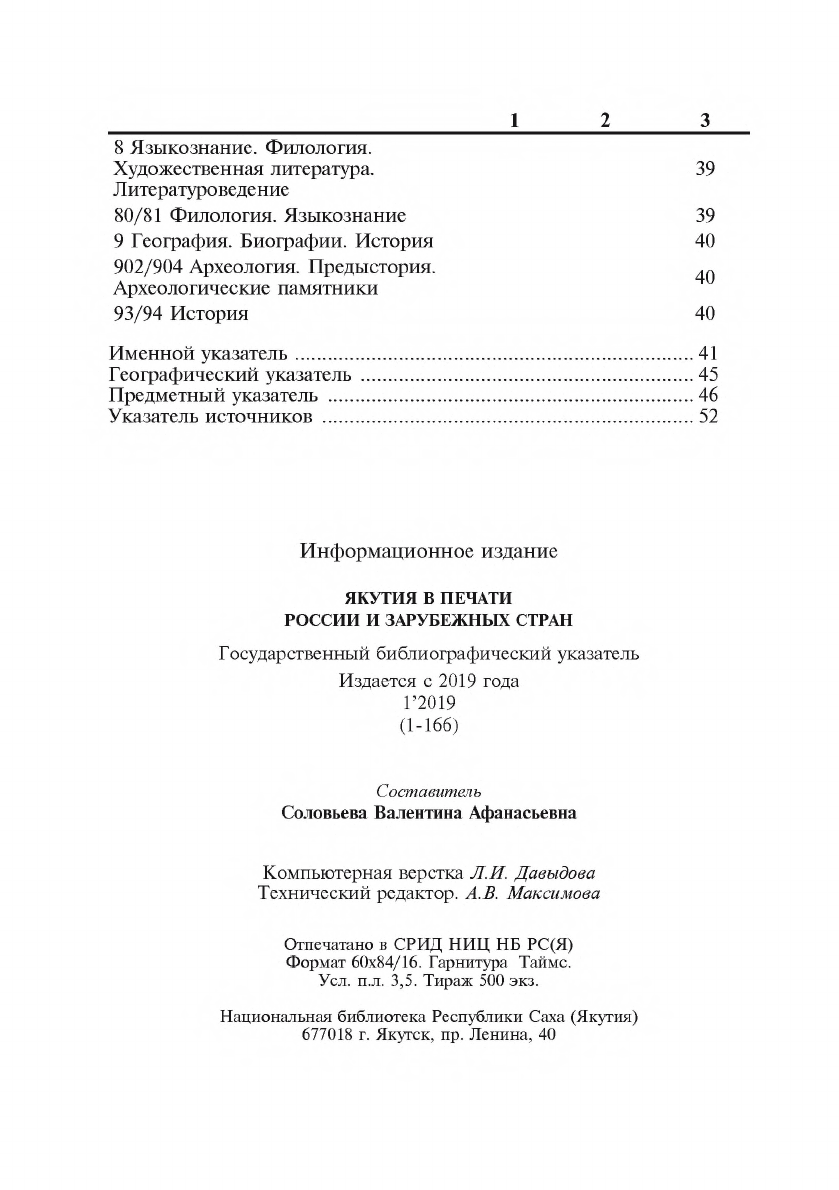 - 1. Якутия в печати России и зарубежных стран = Саха Өрөспүүбүлүкэтин туһунан Арассыыйа уонна тас дойдулар таһаарыылара: государственный библиографический указатель. судаарыстыбаннай библиографическай ыйынньык