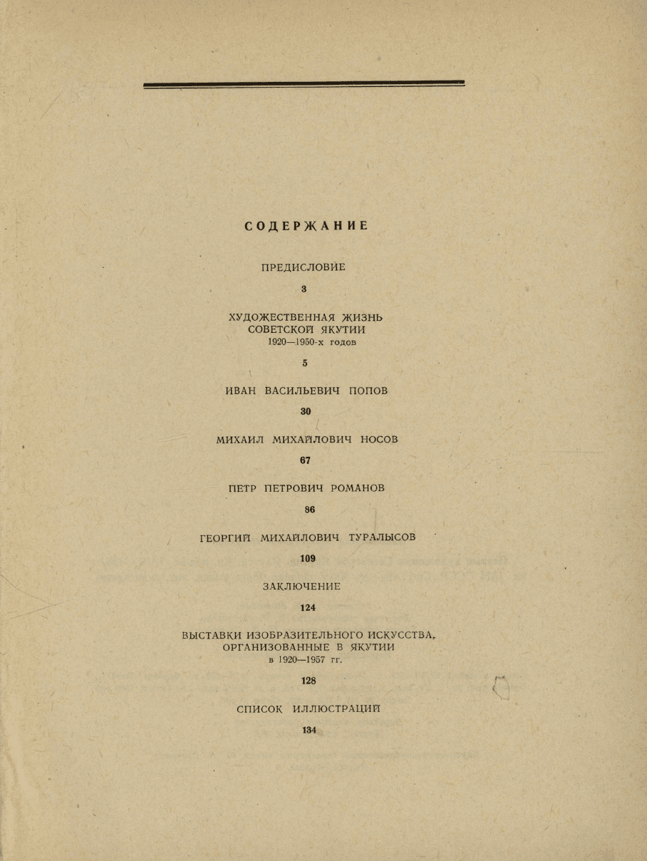 Книга посвящена первому поколению художников Советской Якутии и явлениям из истории становления профессионального изобразительного искусства в республике в период с 20-х до второй половины 50-х годов. Основное внимание уделяется анализу творчества художников И. В. Попова, М. М. Носова, П. П. Романова и Г. М. Туралысова. Главными источниками для написания книги послужили архивные сведения и материалы республиканской периодики. На основе этих данных выявлены или уточнены многие факты творческой биографии художников и самой художественной жизни, воссоздана хроника выставочной деятельности в республике в рассматриваемый период. Монография рассчитана на читателей, интересующихся изобразительным искусством Якутии
