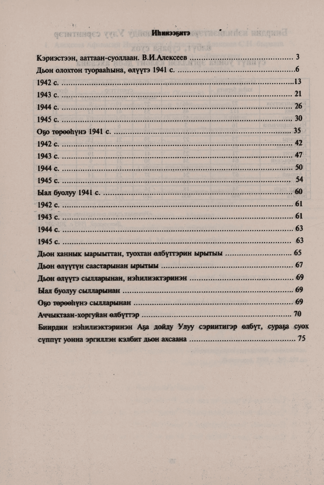 Сэрии ыар сылларыгар : Өлүү, төрөөһүн, ыал буолуу / [бэчээккэ бэлэмнээтэ В. И. Алексеев ; худож. М. П. Баишева]. - Бэрдьигэстээх : "Үлэ күүһэ" хаһыат редакцията, 2015. - 75, [1] с.