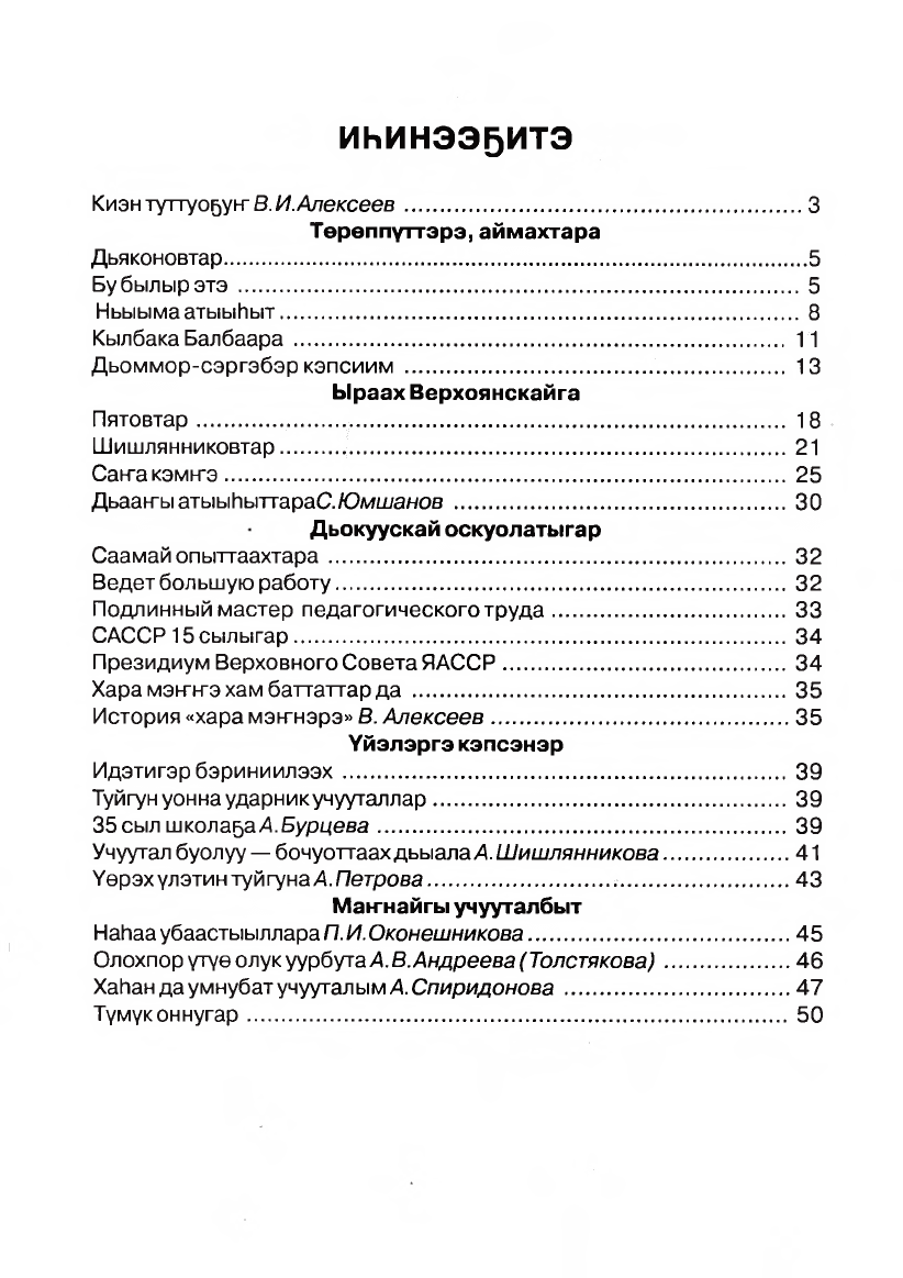 Эта книга о нашей землячке, первой учительнице, родом из Шологонского наслега А. И. Шишлянниковой (Дьяконовой), которая является одним из ярких представителей тех, кто делал самые первые шаги на ниве просвещения в Якутии. Замечательно то, что она имеет награды и от царского правительства и от советской власти. На протяжении 40 лет сеяла разумное, доброе, вечное среди подрастающего поколения