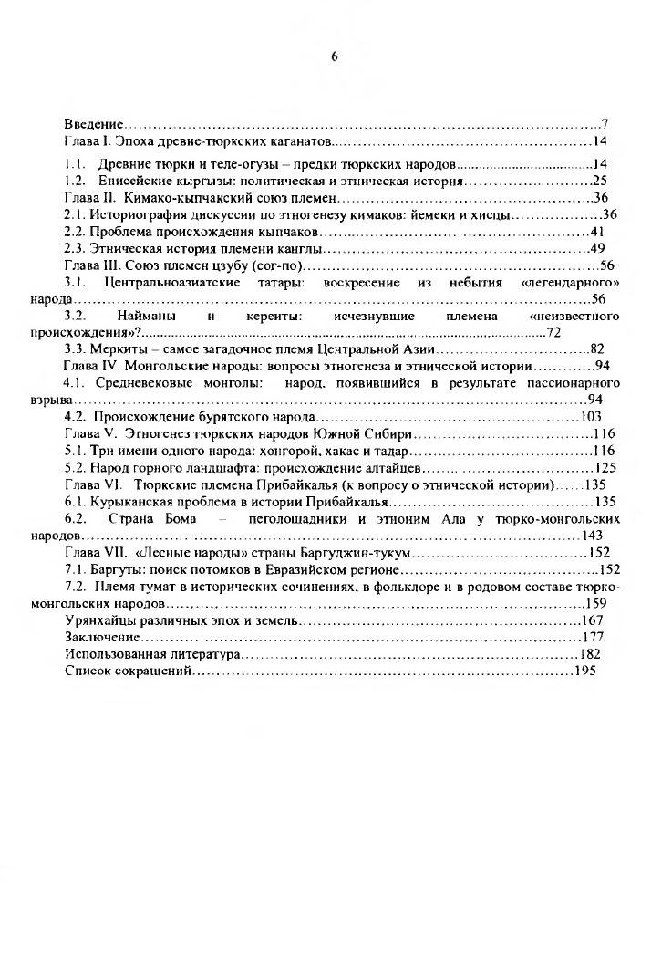В данной работе изучаются вопросы этногенеза и этнической тюрко-монгольских народов. Для кочевых народов миграции на огромные расстояния, распад и слияния были обычным явлением их этнической истории. Изучаются такие кочевые объединения как меркиты, кыпчаки, древние тюрки, енисейские кыргызы, центральноазиатские татары, найманы. Генеалогические легенды, археологические исследования, этнология, сведения китайских и арабо-персидских источников, материалы рунических надписей, родоплеменной состав тюрко-монгольских народов, привлекаются для решения вопросов этногенеза тюрко-монгольских народов. Далее изучаются историография вопросов этногенеза современных тюрко-монгольских народов: алтайцев, хакасов, монголов, бурятов