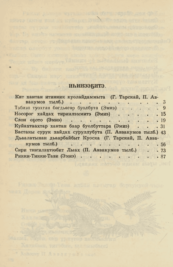 Сборник рассказов Р. Кимплинга в переводе на якутский язык.