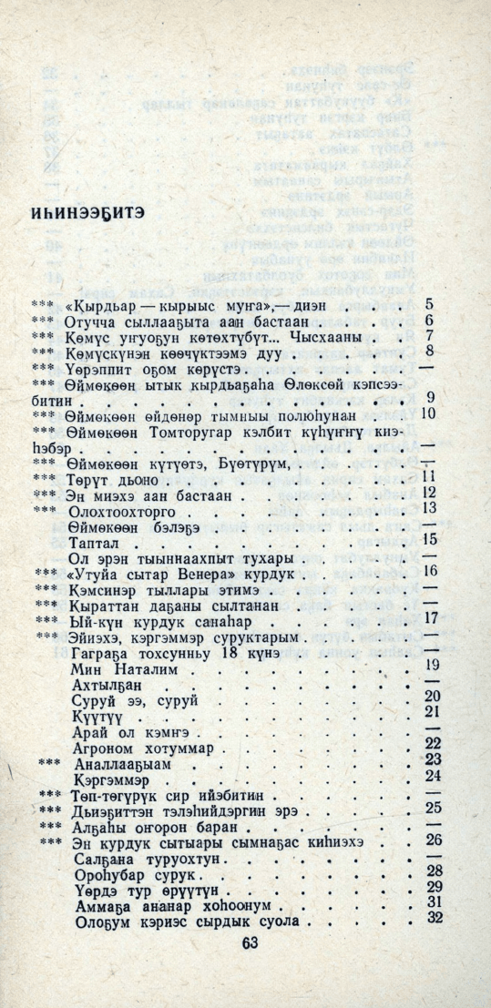 В сборник включены стихи разных лет, в которых автор воспевает древнюю и щедрую землю саха, вспоминает пройденные пути-дороги, говорит о том, чему был рад в жизни, чем гордился и что презирал. Большой цикл стихов посвящен той, с кем поэт шел по жизни рука об руку долгие сорок лет