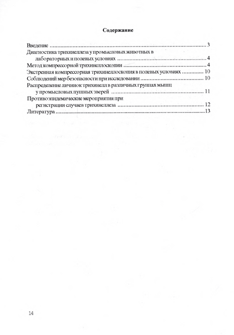 Исследование личинок трихинелл у промысловых животных на террритории Якутии : инструкции / Рос. акад. с.-х. наук, Сиб. отд-ние, Якут. науч.-исслед. ин-т сел. хоз-ва ; [отв. ред. М. П. Неустроев, д. ветеринар. н., проф. ; разраб.: Л. М. Коколова, к. ветеринар. н. [и др.]. - Якутск : ЯНИИСХ СО РАСХН, 2007. - 14 с.