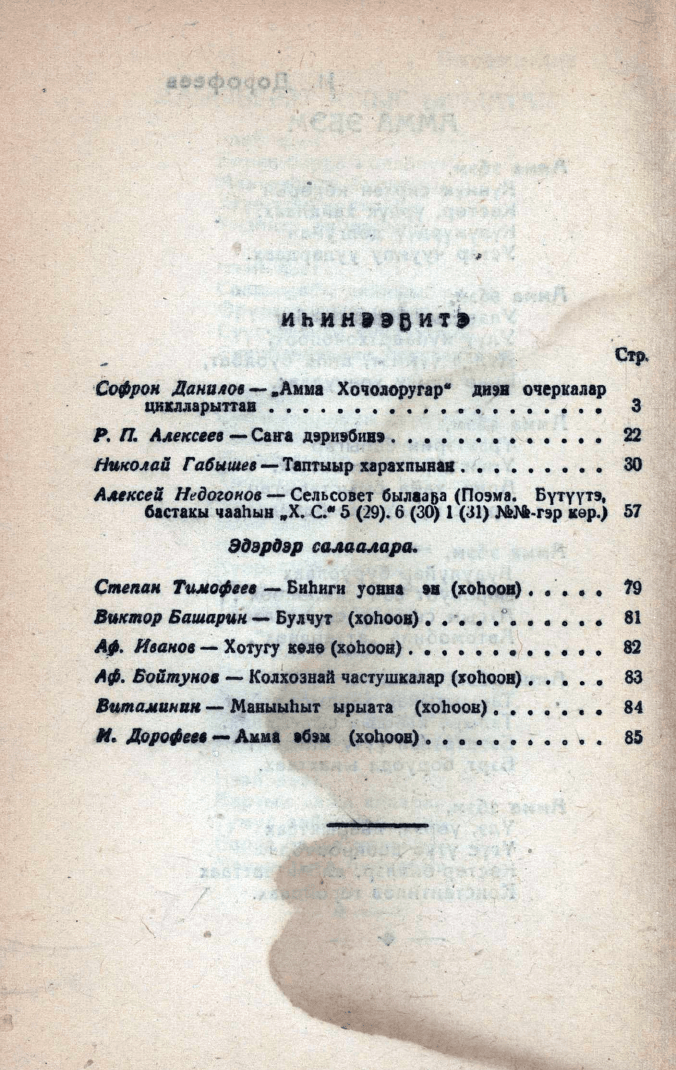 Хотугу сулус : [сахалыы тылынан уус-уран литературнай. уонна общественно-политическай сурунаал] / САССР сов. суруйааччыларын союһа. - Якутскай : Саха сиринээҕи кинигэ изд-вота, 1940-1989. 1949, N 2 (32). - 1949. - 84, [2] с.
