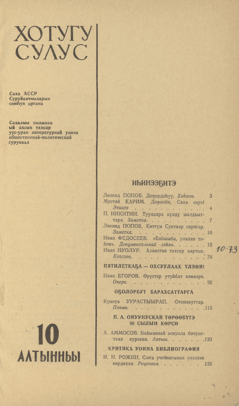 - 10. Хотугу сулус, 1973, №11 (сэтинньи)
