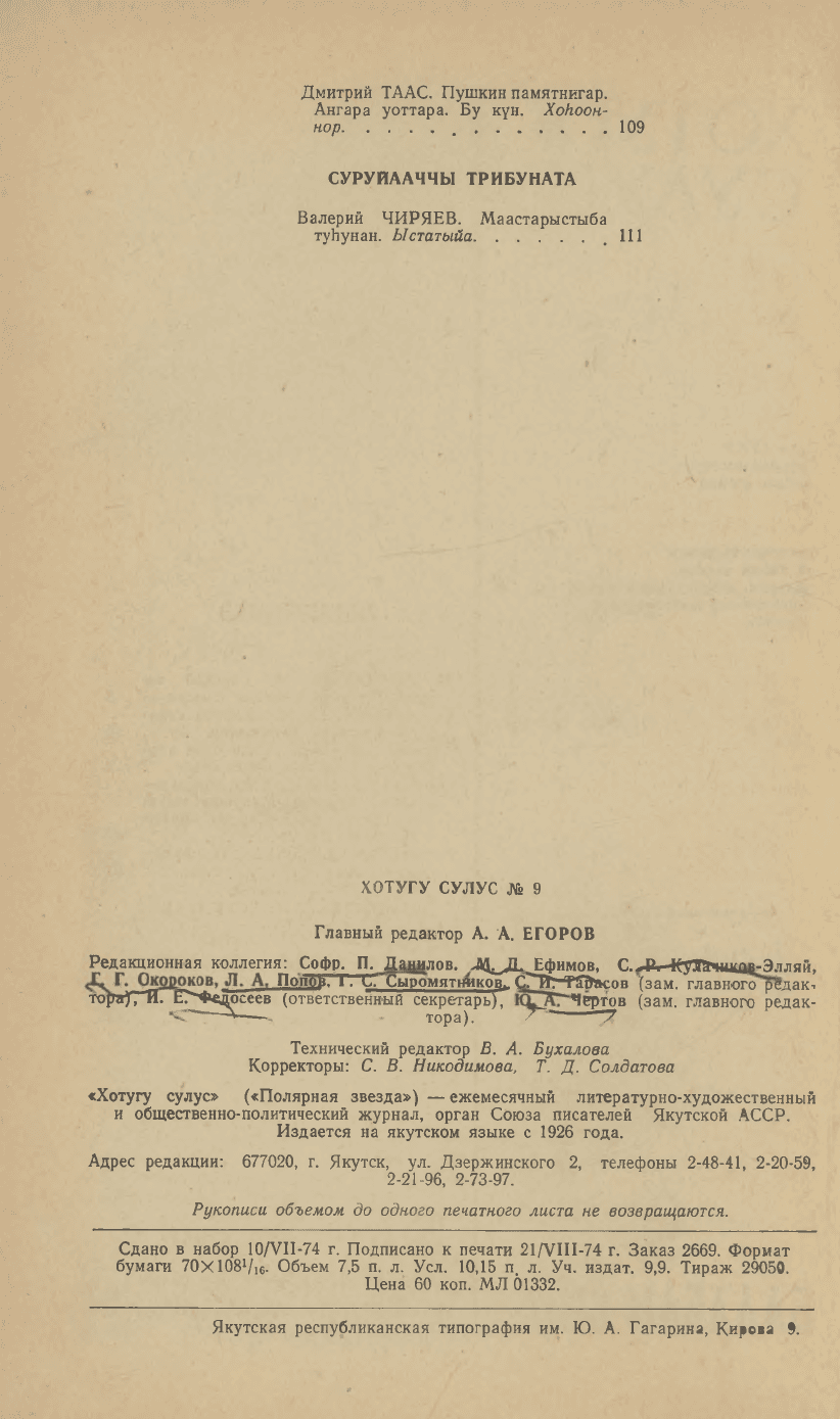 - 1. Хотугу сулус: [сахалыы тылынан уус-уран литературнай. уонна общественно-политическай сурунаал], 1974, №1