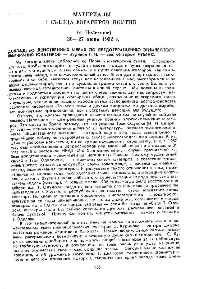 Материалы съездов малочисленных народов Севера Якутии (1989-1993 гг.) / [составители: Кривошапкин А. В. и др.]. - Якутск : Сахаполиграфиздат, 1993. - 210, [1] с.