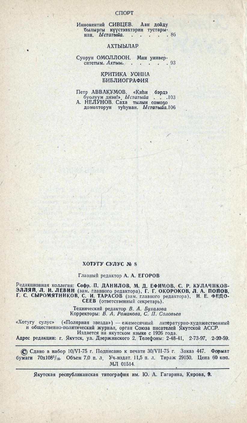 - 8. Хотугу сулус: [сахалыы тылынан уус-уран литературнай. уонна общественно-политическай сурунаал], 1975, №9