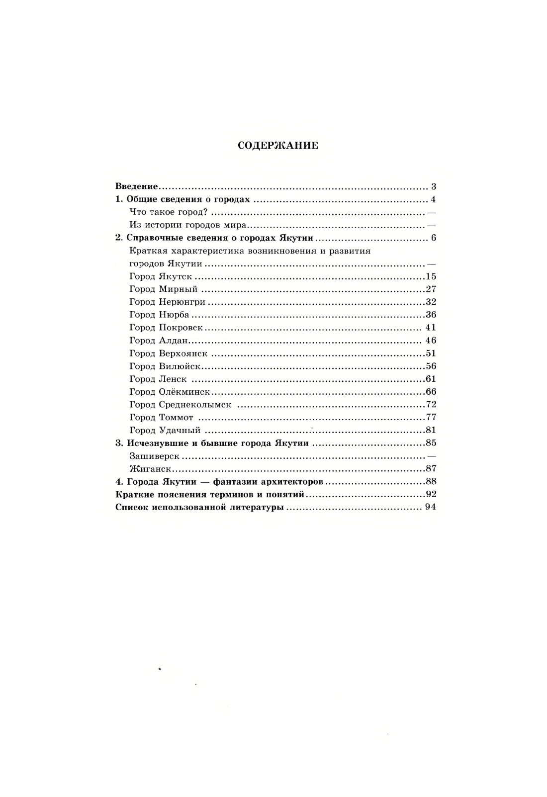 Вниманию читателя предлагается книга о городах Якутии. В ней прослеживаются главные этапы их развития, приведены справочные сведения по их истории, географии и этнографии. Дается краткая характеристика населения городов. Книга раскрывает современное развитие городов Якутии и заглядывает дальше в будущее. Издание предназначено для школьников среднего и старшего возраста, студентов и аспирантов, а также для широкого круга читателей