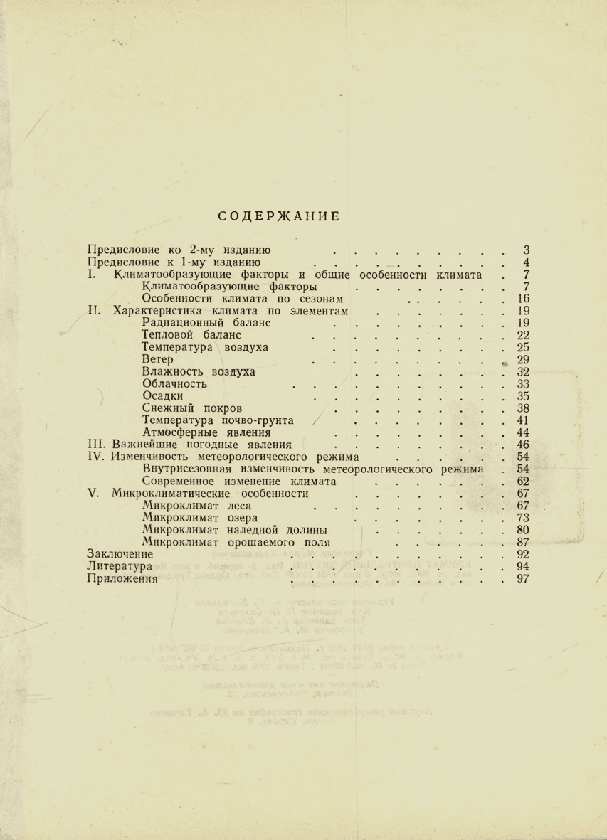 В брошюре представлено краткое климатическое описание наиболее освоенной в хозяйственном отношении территории Центральной Якутии. Анализируются основные климатообразующие факторы и особенности климатических сезонов. Дается характеристика режима по отдельным метеорологическим элементам в среднем многолетнем выводе. Рассматриваются особые погодные явления в различные сезоны года. Характеризуются сезонная, внутрисезонная и вековая изменчивость метеорологических показателей. Исследуются особенности микроклимата леса, озера, наледи, орошаемых участков и др. Сделана наметка климатического районирования.