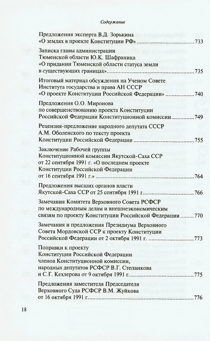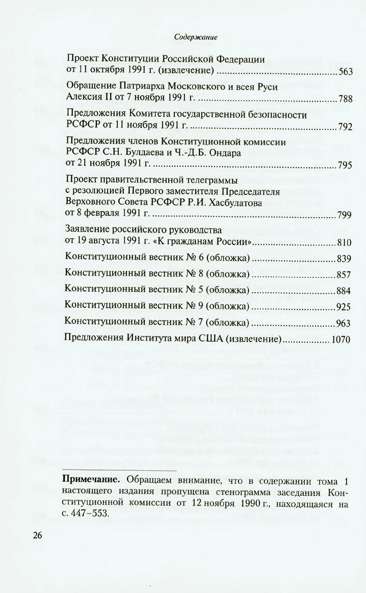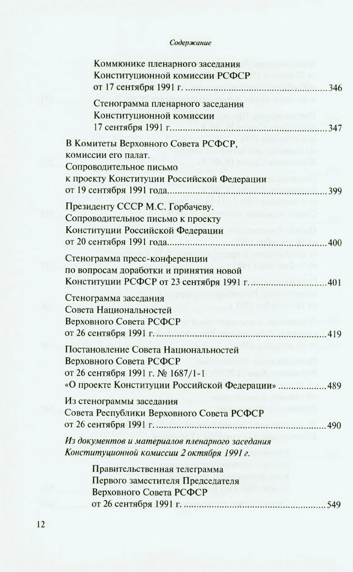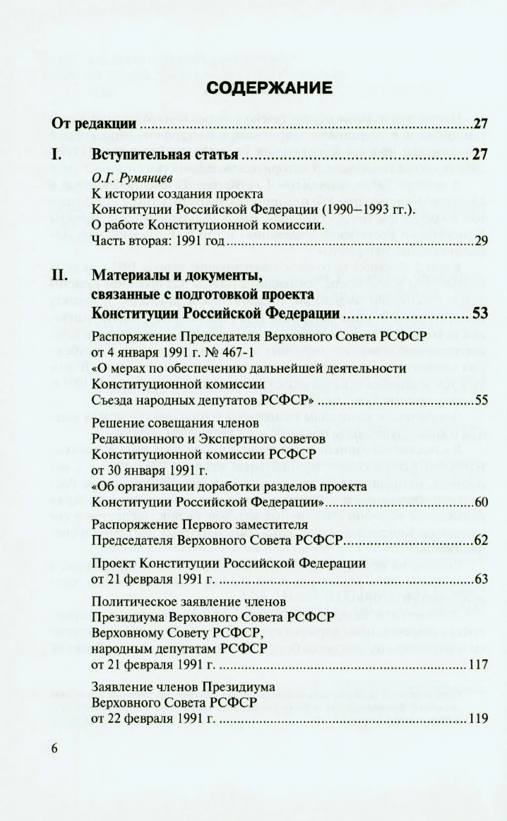 Из истории создания Конституции Российской Федерации. Конституционная комиссия: стенограммы, материалы, документы (1990-1993 гг.) : [в 6 т.] / Фонд конституц. реформ ; под общ. ред. к.ю.н. О.Г. Румянцева. - Москва : Wolters Kluwer, 2007. - 21 см. Т. 2: 1991 год. - 2008. - 1118 с.
