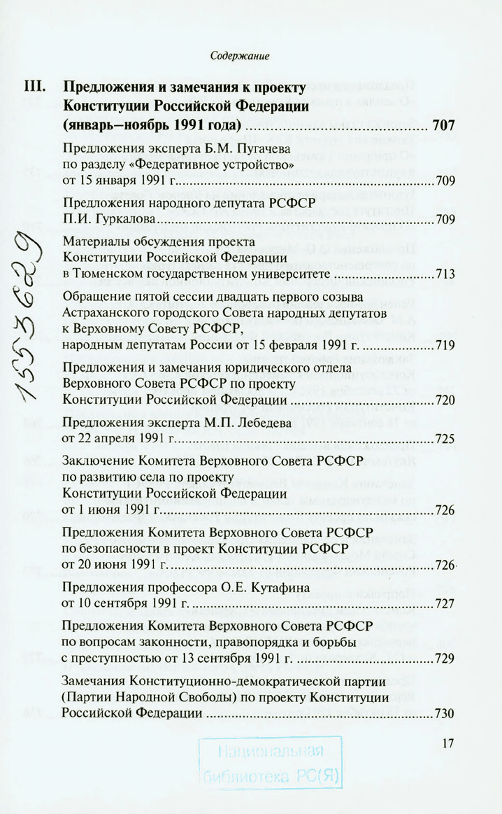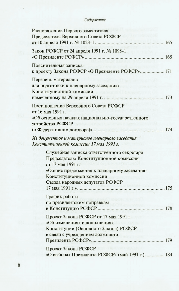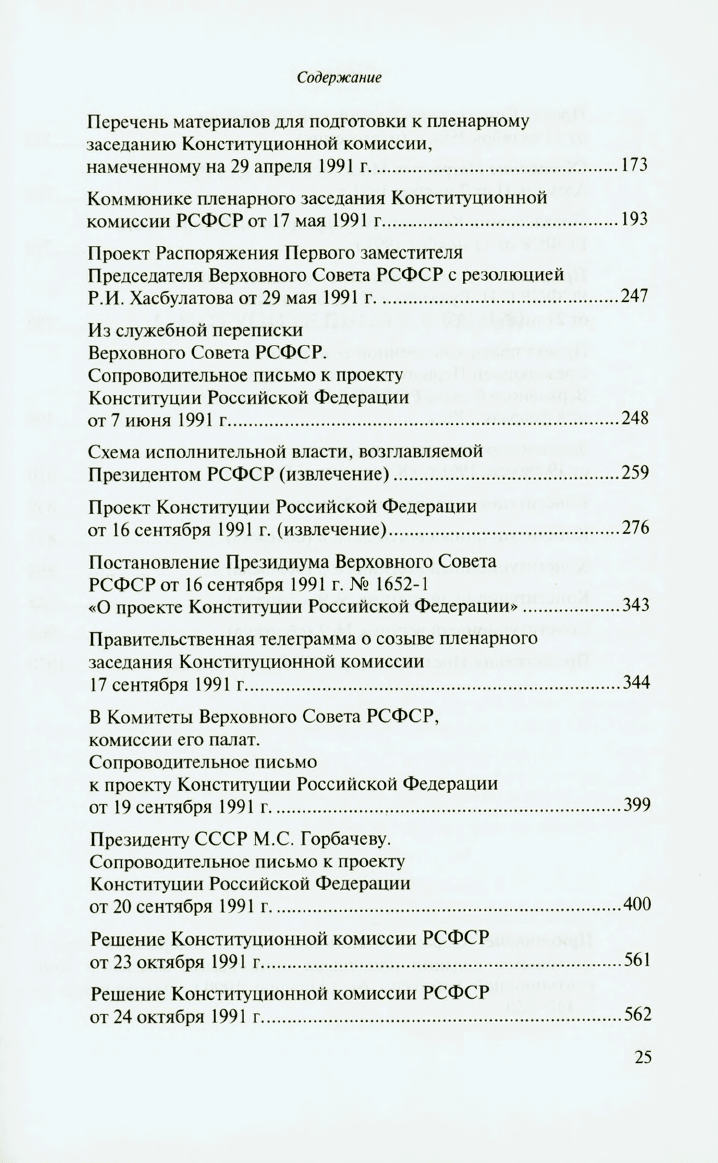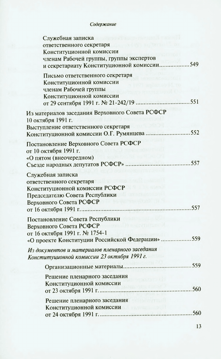 Из истории создания Конституции Российской Федерации. Конституционная комиссия: стенограммы, материалы, документы (1990-1993 гг.) : [в 6 т.] / Фонд конституц. реформ ; под общ. ред. к.ю.н. О.Г. Румянцева. - Москва : Wolters Kluwer, 2007. - 21 см. Т. 2: 1991 год. - 2008. - 1118 с.