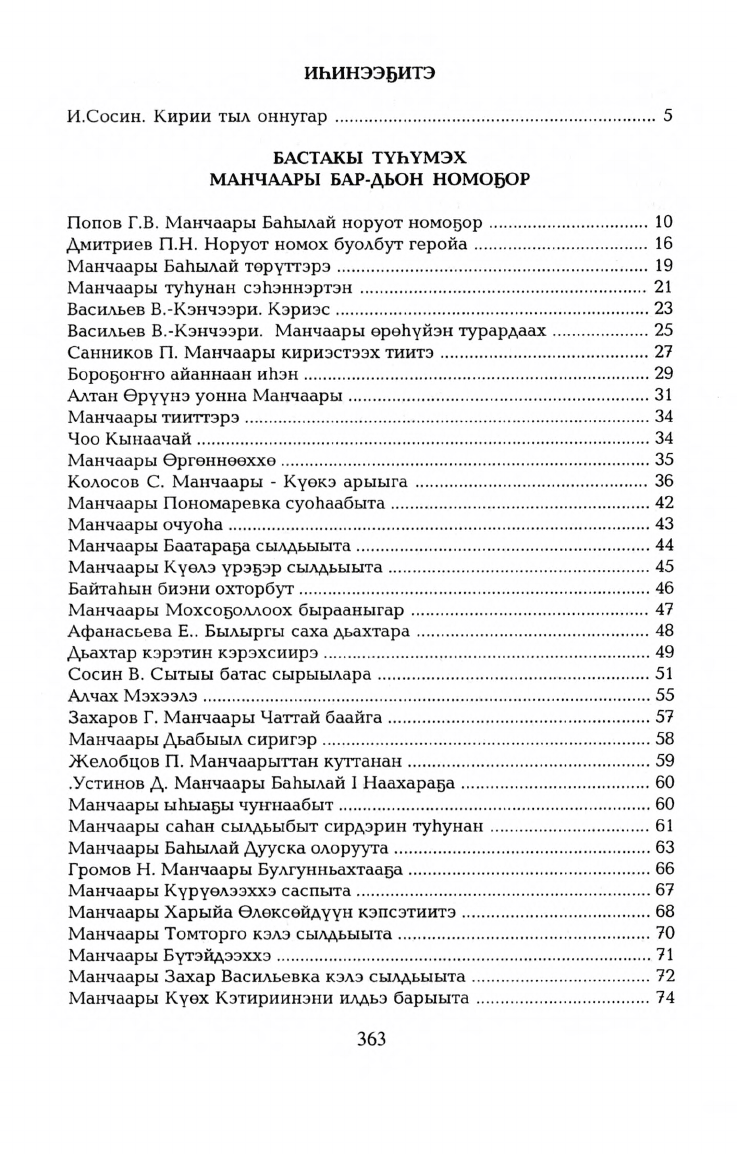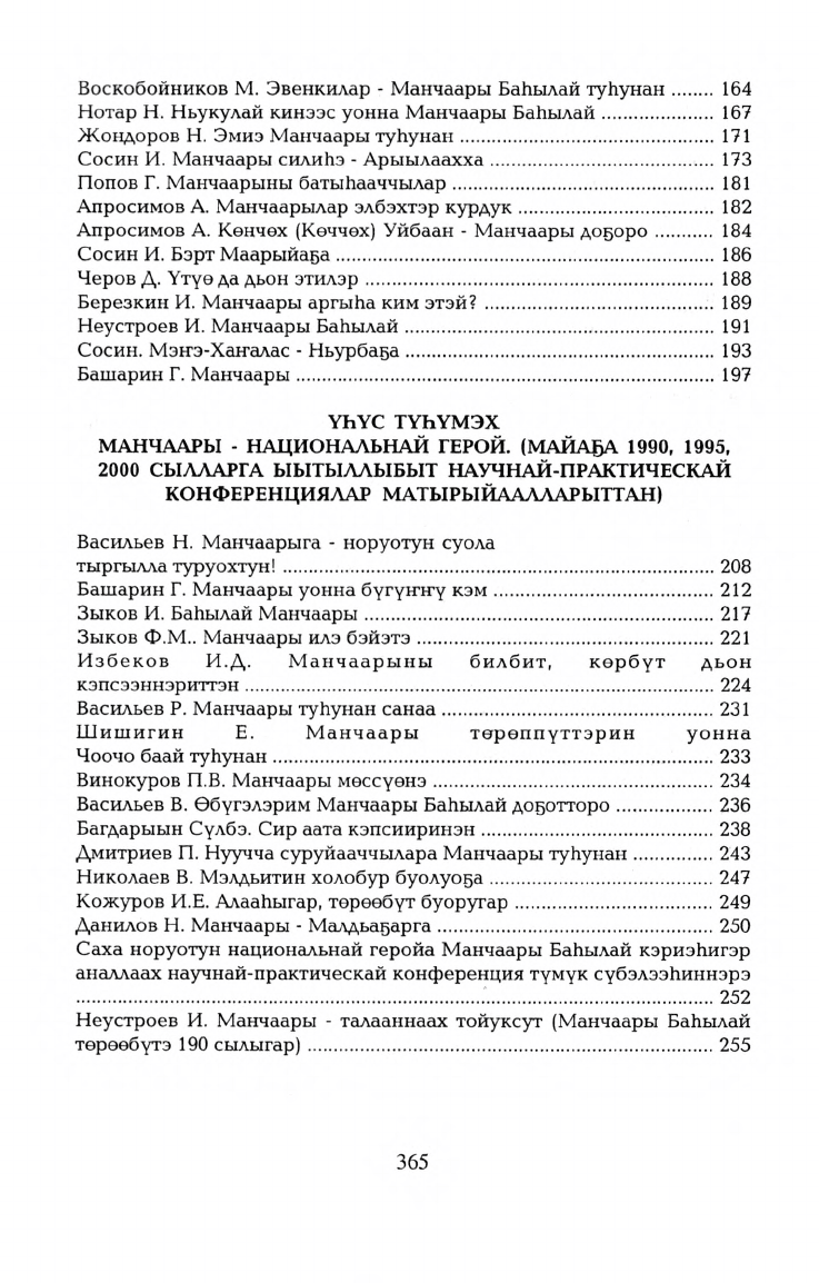 Манчаары аман өһө - Манчаары албан аата : Манчаары Баһылай төрөөбүтэ 200 сыла туолуутугар / [матырыйааллары уонна бэчээккэ бэлэмнээтилэр: И. М. Сосин (ред) уо. д. а.]. - Москва : Восток-издат, 2005. - 365, [1] с.