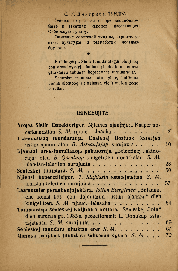 Туундара / С. Миитэрэйэп хомуйан оҥорбут кэпсээннэрэ уонна уочаркалара ; А. Куудурун- Абаҕыыныскай уонна К. Поппуок тылб. - Москуба : Судаарыстыба үөрэх пэдэгиэгикэ кинигэтин пэчээтэ, 1936. - 71, [1] с.