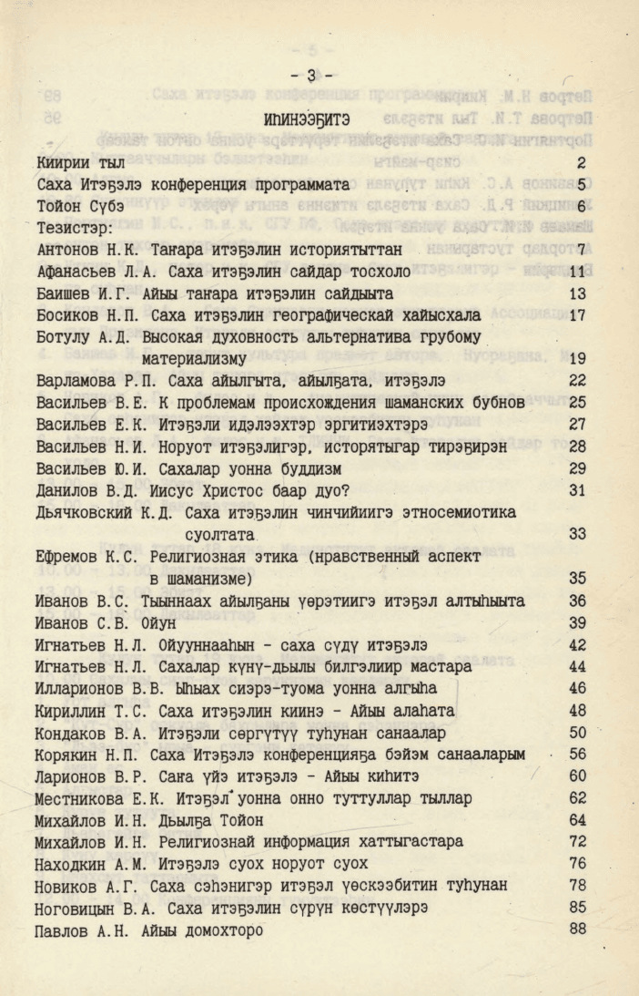 Саха итэҕэлин туһунан маҥнайгы конференция : дакылааттар / Саха Респ. Президенин Ырытар киинэ. - Дьокуускай : Изд-во аналит. центра при Президенте Респ. Саха, 1995. - 122 с.