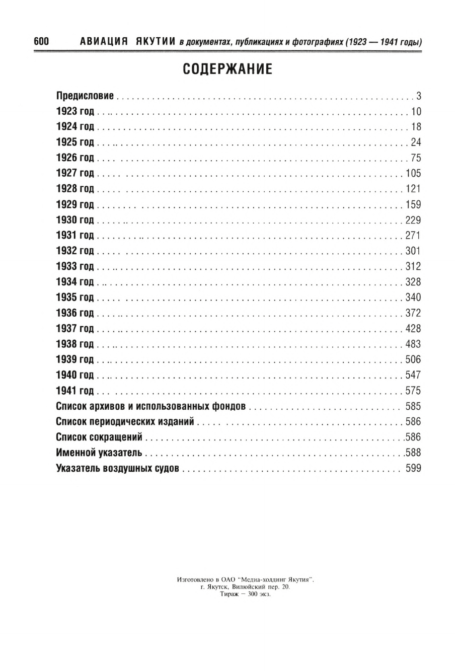 Авиация Якутии в документах, публикациях и фотографиях (1923-1941 годы) / ГУ "Нац. архив Респ. Саха (Якутия)" ; [сост.: к.ист.н И. Е. Негенбля, А. А. Калашников]. - Якутск : Медиа- холдинг "Якутия", 2010. - 600 с.