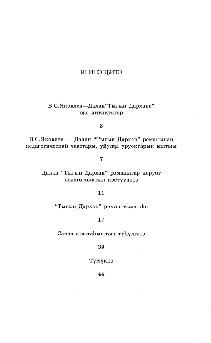 В. С. Яковлев-Далан "Тыгын Дархан" романа оҕо иитиитигэр / [киирбит ыстатыйалар ааптардара: Л. С. Аргунова, Т. А. Сергучева, У. И. Попова, С. н. Игнатьева] ; Мэҥэ Хаҥалас улууһун Бэдьимэ орто оскуолата, Бэдьимэтээҕи "Норуот муудараһын дьиэтэ". - Дьокуускай : Бичик, 2003. - 43, [1] с.