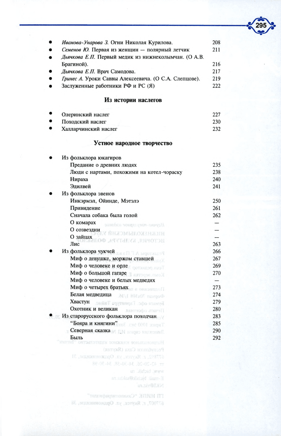 Нижнеколымский улус: История. Культура. Фольклор / Администрация Нижнеколым. улуса, Ин-т гуманит. исслед. АН РС(Я) ; [редкол. : Е. П. Антонов (отв. ред.) и др]. - Якутск : Бичик, 2003. - 295 с.